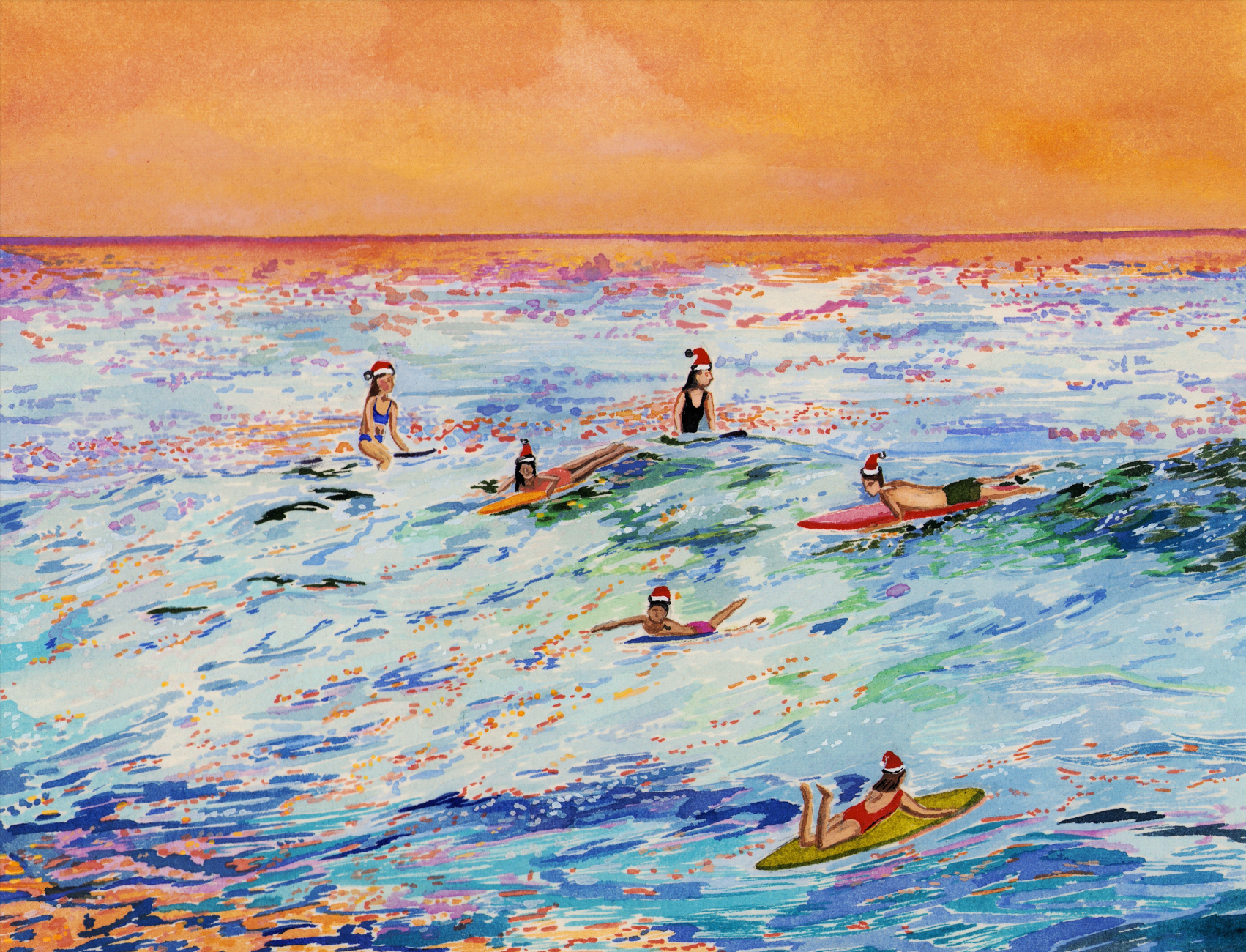 Christmas surfing card. Blank greeting cards in C6 size complete with white envelope.